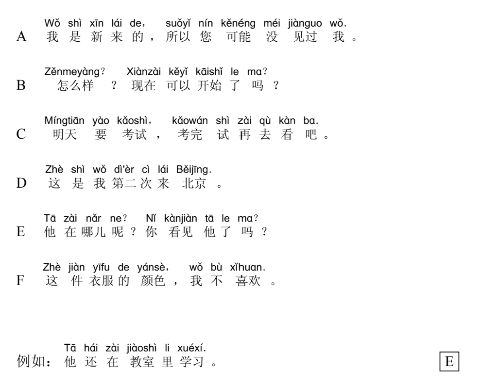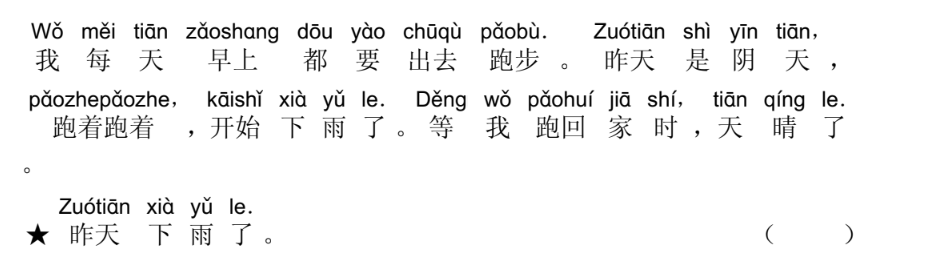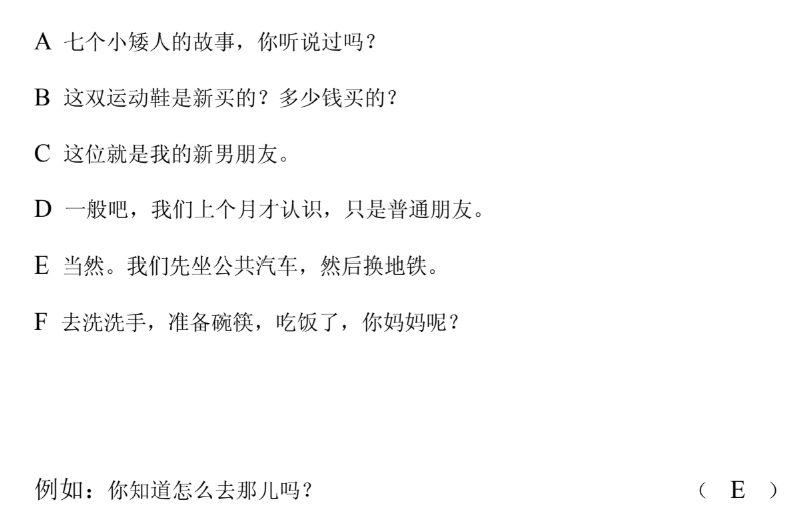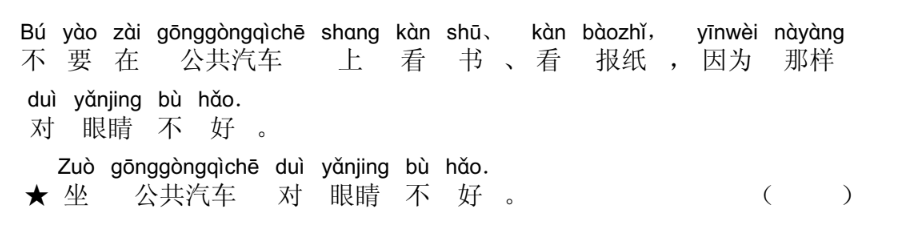 Đề thi thử HSK 2 (Đọc) - Đề 1