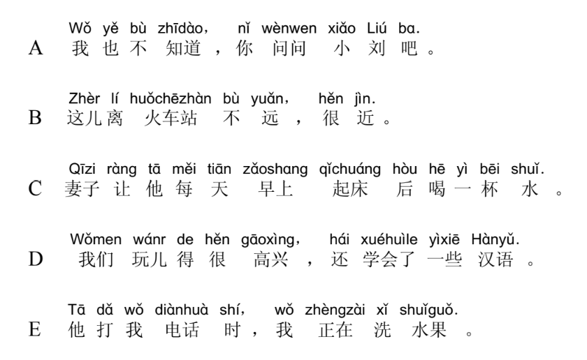 Phần Nghe - Phần Một (第1-5题)