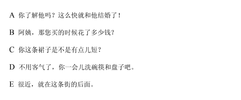 Đề thi thử HSK 2 (Đọc) - Đề 5