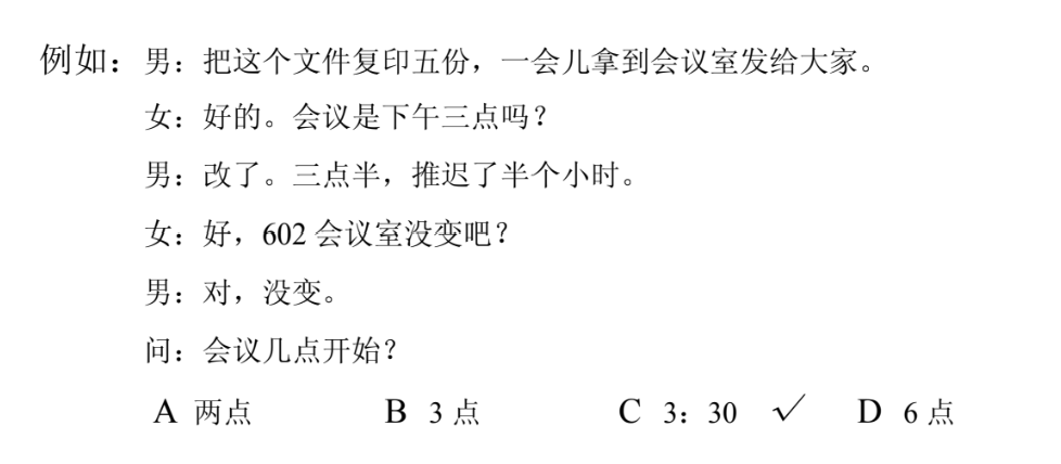 听力 (20题, 约15分钟)