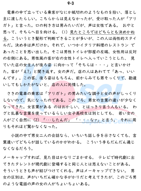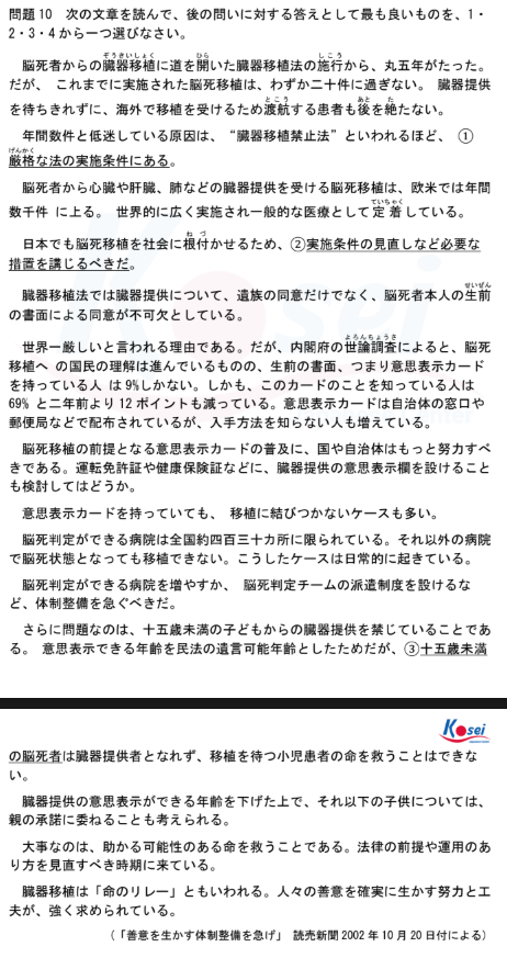 Câu 10: (1)に入る最も適当なものはどれか。