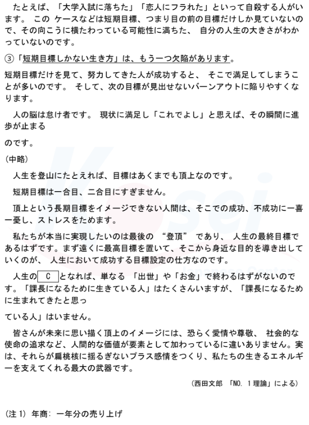 次の文章を読んで、後の問いに対する答えとして最もよいものを、①②③④から一つ選びなさい。