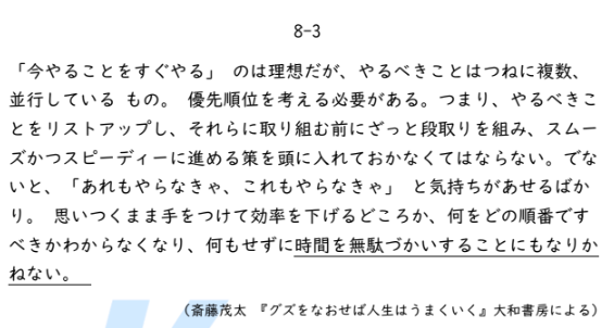 - やるべきことをすぐにやれば、効率を下げることはなくなるから。