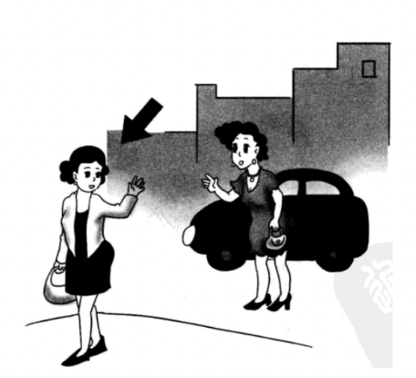 「このみちを____いってください。すぐそこですよ。」