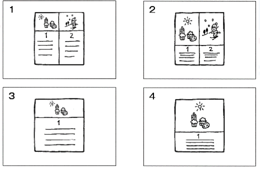 もんだい1では、はじめにしつもんを聞いてください。それからはなしをきいて、もんだいようしの1から4の中から、いちばんいいものをひとつえらんでください。