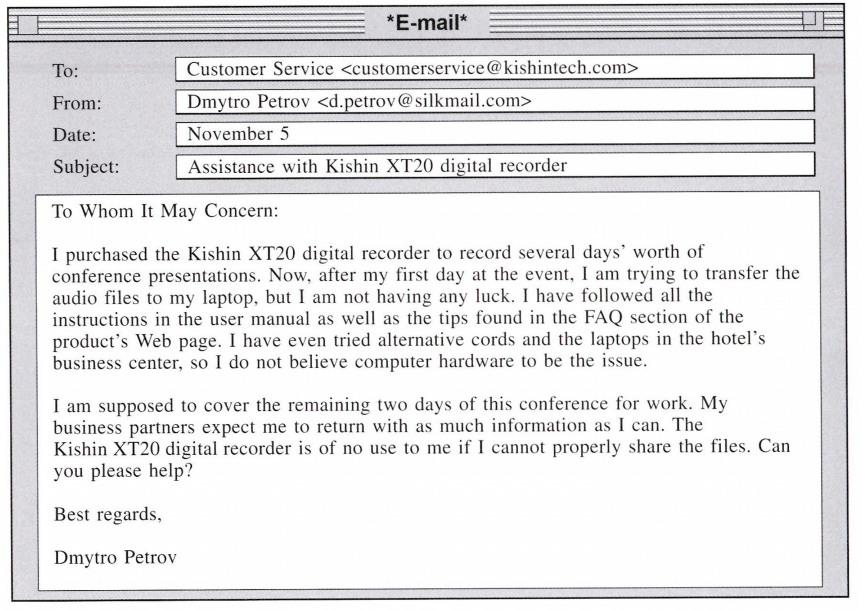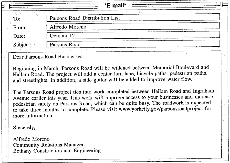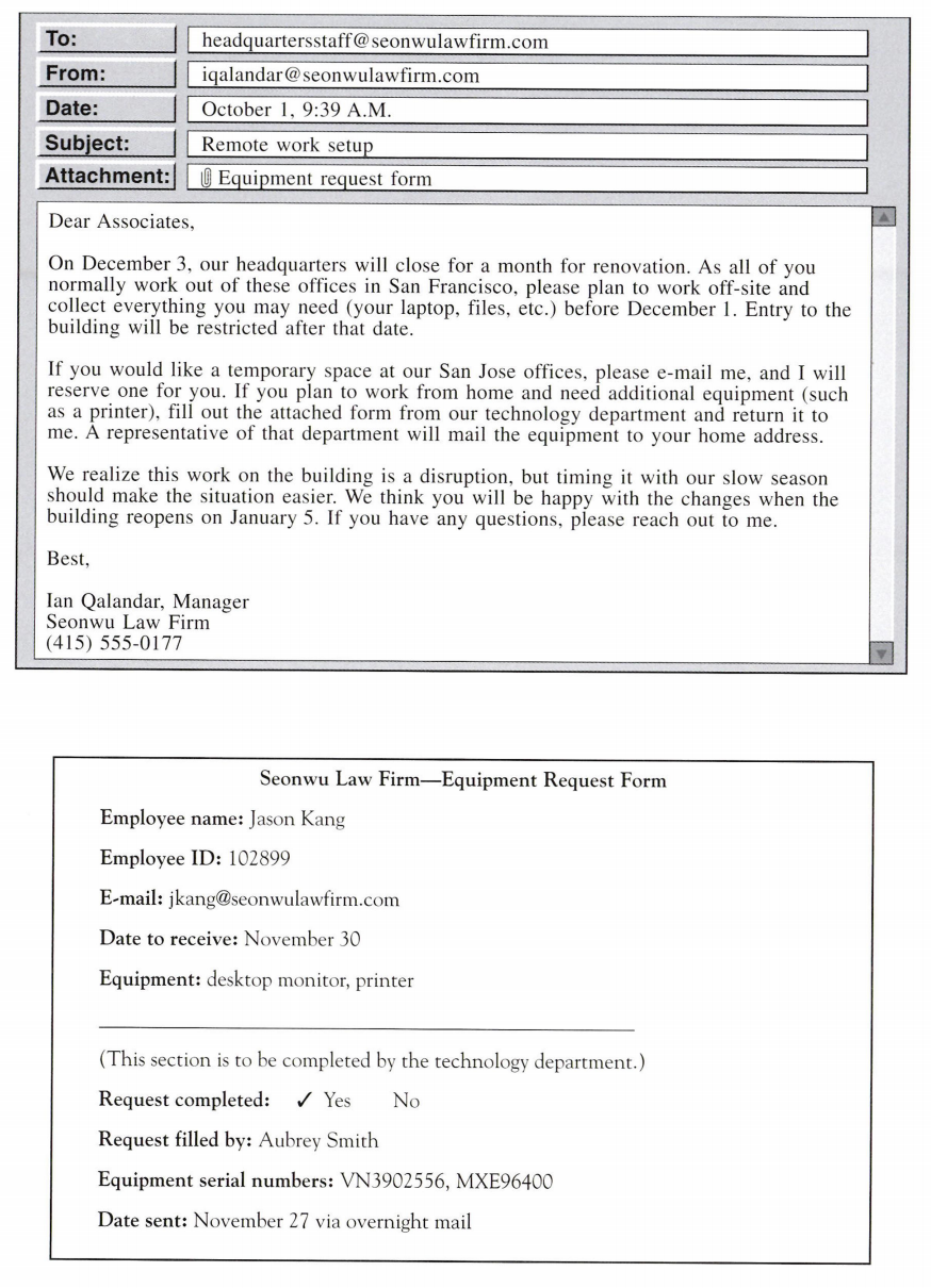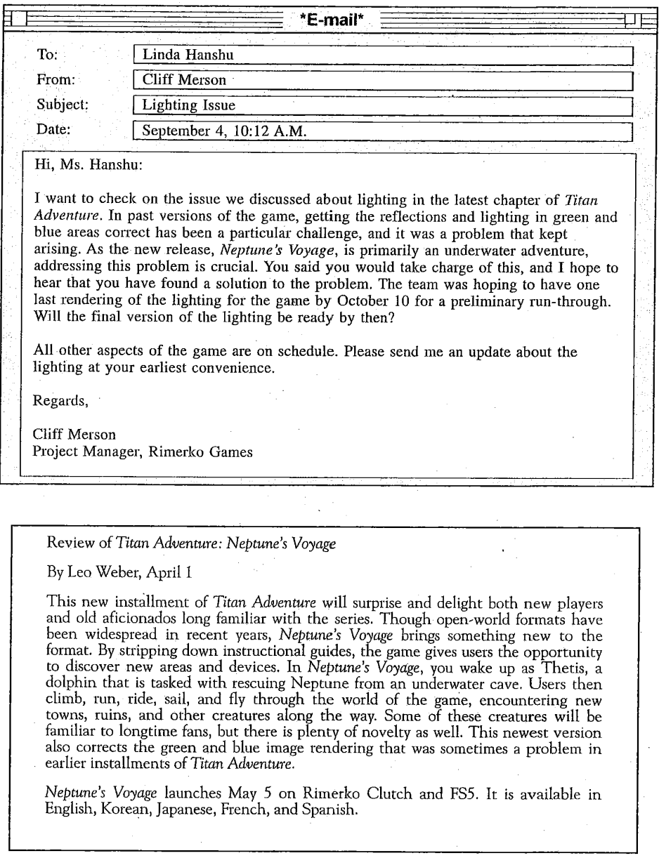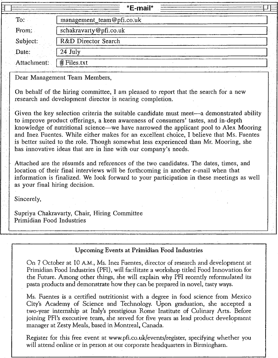 Questions 50-54 refer to the following letter and e-mails.