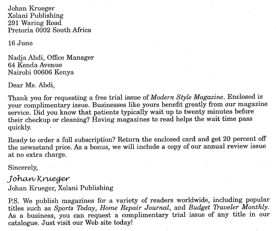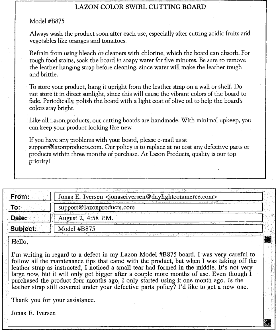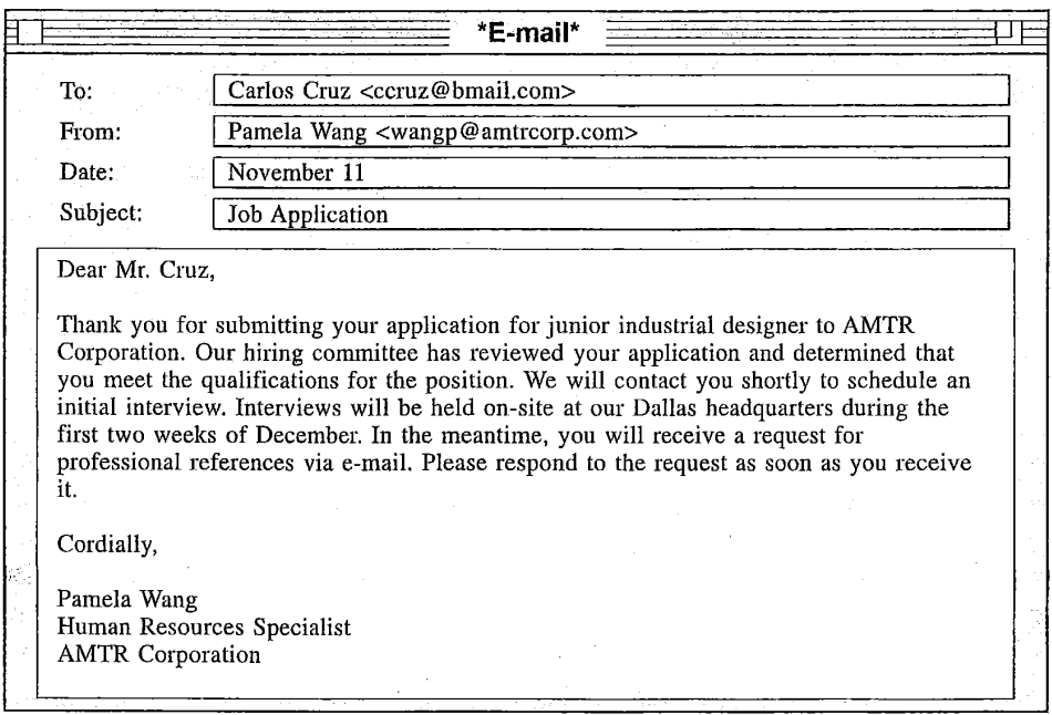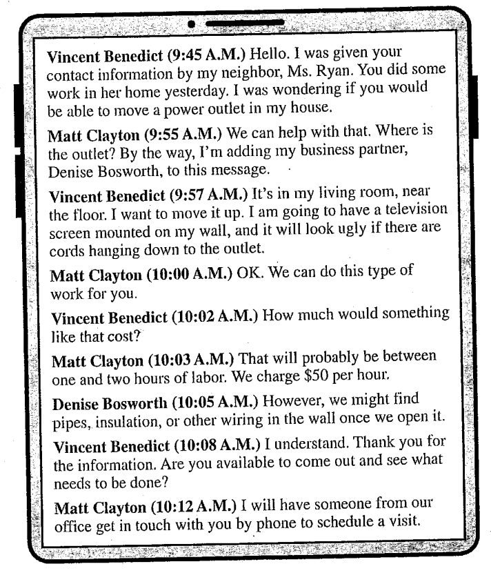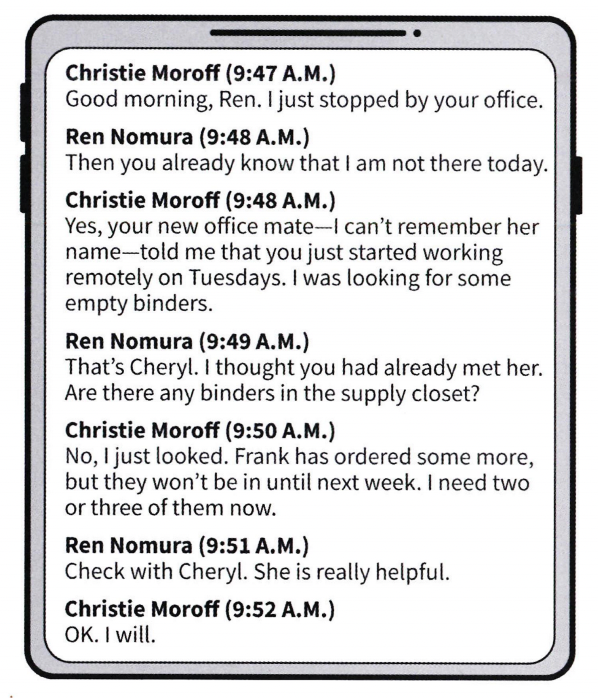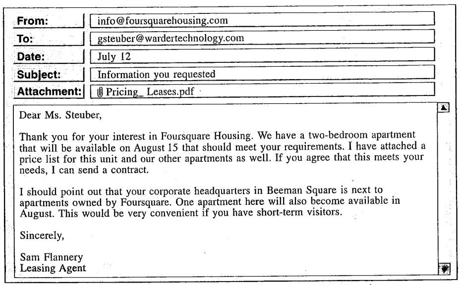 Questions 50-54 refer to the following letter and e-mails.