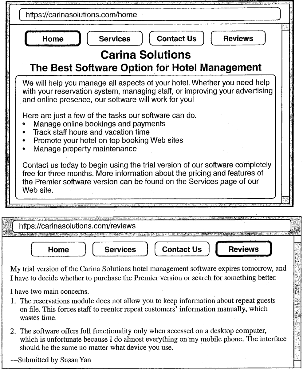 Questions 40-44 refer to the following Web page, schedule, and online review.